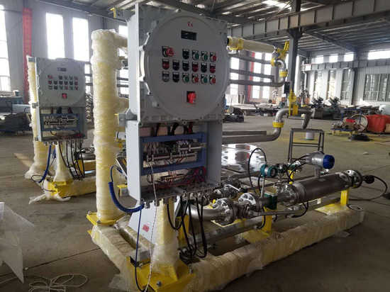 油品定量裝車橇裝組是指將每一個裝車鶴位內的儀表和設備集成在一個專用的框架結構內,儀表和設備包括裝車鶴管、流量計、防溢油靜電報警控制器、壓力變送器、裝車流量控制閥、緊急切斷閥,裝車泵、批量控制器等, 只預留工藝連接口和控制電源和通訊接口,這個整體集成部分稱為裝車橇。與傳統的裝車控制系統就地組裝比較,裝車橇可以節省現場設計和現場施工量,縮短項目工期,提高裝車控制系統的質量。